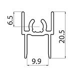Крепится к вертикальному профилю винтом диаметром 6 мм через отверстие, просверленное в вертикали на расстоянии 6,5 мм от края профиля до центра отверстия.